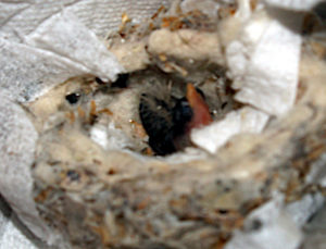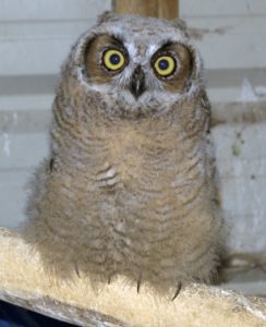 Great horned owl babies are growing fast and although not readily seen in the image a young hummingbird is the
