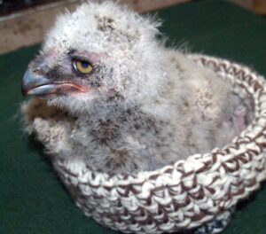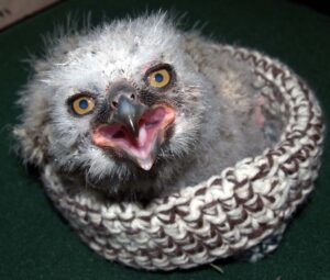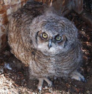 Look what springtime brought to DVWR, a fledgling Saw-whet Owl! Rare for Nevada, Saw-Whet owls are only 8″ tall when full grown.