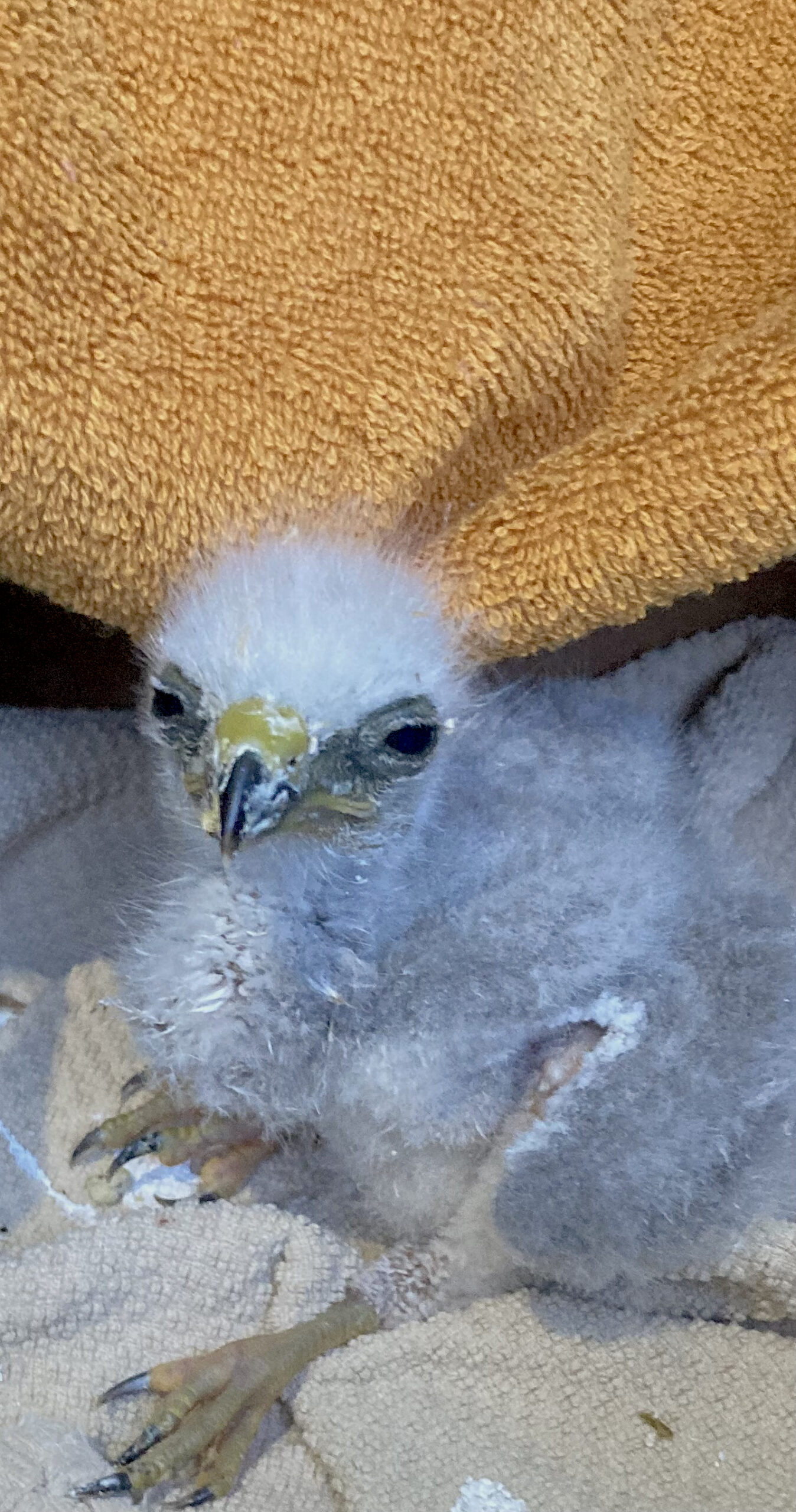 A sleepy baby Swainson’s Hawk arrived at DVWR.  A very kindly bird lover and member of the Audubon Society found the hawk that had been blown from its nest in Elko and together they drove to Fallon!  Along the way, a Fallon NDOW biologist was able to monitor care & feeding, thank goodness for cell phone technology!  Now safely settled in at DVWR, prognosis is excellent.